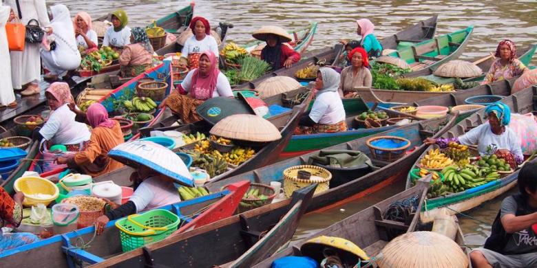 Lain halnya di Banjarmasin, Kalimantan Selatan. Barang yang dijual disini memang seperti pasar pada umumnya, yaitu buah dan sayur. Tetapi yang membedakan adalah para pedagang menjualnya diatas perahu yang terapung!