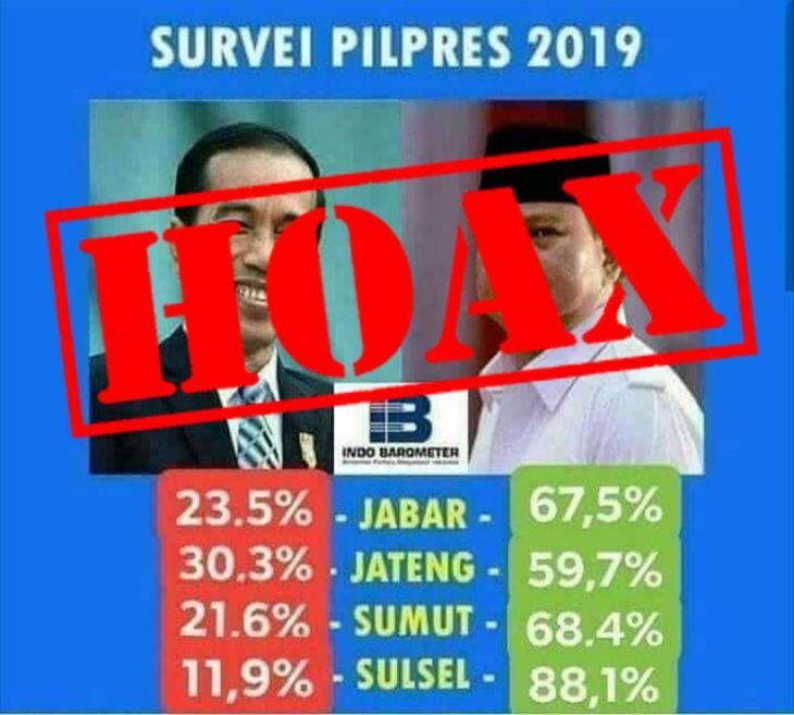 Sayangnya, hasil survei itu ternyata hoax alias palsu dan ditegaskan langsung Indo Barometer.
