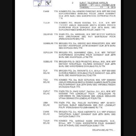 Hal ini sesuai dengan surat Telegram Mabes Polri, tanggal 13 Agustus 2018, dengan nomor: ST/2015/VII/KEP/2018.