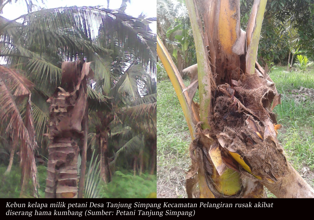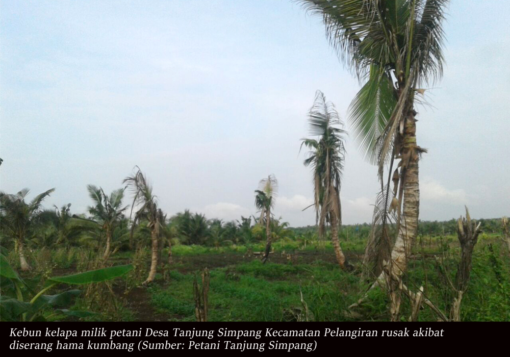 Para petani kelapa menuntut PT TIHP bertanggung jawab atas rusaknya kebun kelapa milik warga akibat hama kumbang. Masyarakat menuding hama kumbang berkembang berasal dari replanting perkebunan sawit milik PT THIP yang tidak sesuai dengan Standar Operational Prosedure (SOP).