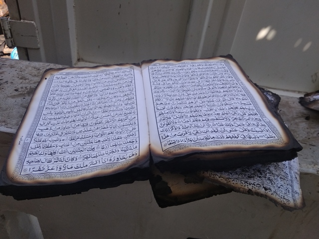 Tajuddin justru menemukan Alquran yang nampak masih utuh. Alquran tersebut ditemukan di balik puing-puing rumah yang hangus tersebut.