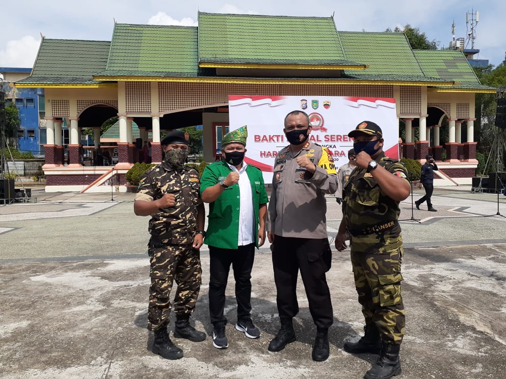 INHILKLIK.COM, TEMBILAHAN - Wakil Ketua Pengurus Wilayah (PW) GP Ansor Provinsi Riau, Taufiqul Ulum sekaligus Bendahara PC GP Ansor Inhil menyebut Ansor/Banser adalah mitra strategis Kepolisian Republik Indonesia (Polri). Pernyataan tersebut diungkapkan Taufiqul Ulum usai menghadiri apel memperingati Hari Bhayangkara selaku utusan PC GP Ansor Inhil, Selasa (26/6/2020) siang di lapangan Gajah Mada, Tembilahan.
