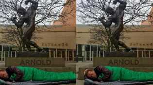 Arnold Aktor Terkenal Tidur di Jalanan Depan Patung Perunggu Dirinya