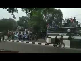 JAKARTA – Ratusan suporter bola jarah dagangan warga Ciracas dan Kramat Jati Jakarta. Aksi .