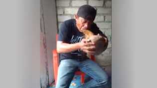 Aksi Pria ini Bikin Ngilu, Kupas Kelapa dengan Gigi