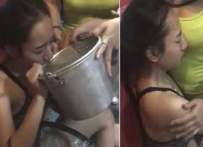 INHILKLIK.COM, THAILAND - Video seorang wanita muda yang menenggak air es di Tha.