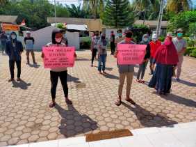 Kades Pasar Baru bersama Warganya Demo Camat Teluk Mengkudu