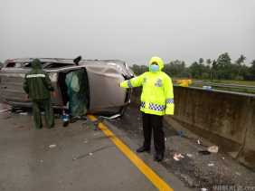Mobil Fortuner Tabrak Agya Alami Kecelakaan di Jalan Tol Sergai