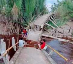 INHILKLIK.COM - Jembatan penghubung antar dusun di Desa seberang Sanglar ambruk, jumat 16 april 2.