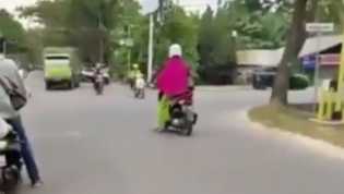 Emak-emak Ini Pakai Helm dan Berhenti saat Lampu Merah, Ada Tapinya