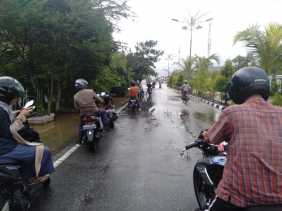 INHILKLIK.COM, TEMBILAHAN - Seperti biasa saat pasang dalam tiba beberapa ruas jalan di kota Temb.