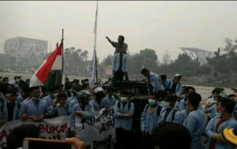 Kabut Asap Tak Kunjung Ilang, Ratusan Mahasiswa FISIP UNRI Sruduk Kantor Gubernur Riau