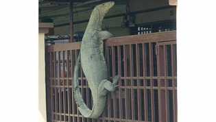 Dikejar Anjing, Biawak Ini Panjat Pagar Rumah Karena Ketakutan