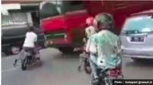 Pelajar Nyaris Dihantam Truk, Jadi Bahan Lelucon Warganet