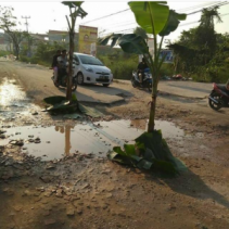 Tak Kunjung Diperbaiki, Warga Tanam Pohon Pisang di Jalan Sigunggung