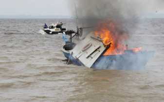 Kejari Bengkalis Bakar Kapal Nelayan Berbendera Malaysia