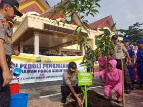 Kapolres,Peduli Penghijauan Penanaman Pohon Serentak Beserta Staf Dan Bhayangkari