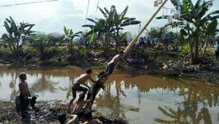 Panjat Pinang Versi di Kali Tajaan Koramil Rengat Disambut Antusias warga