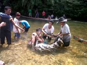 MENCOKAU ikan lubuk larangan adalah memanen ikan lubuk larangan di Sungai Subaya.